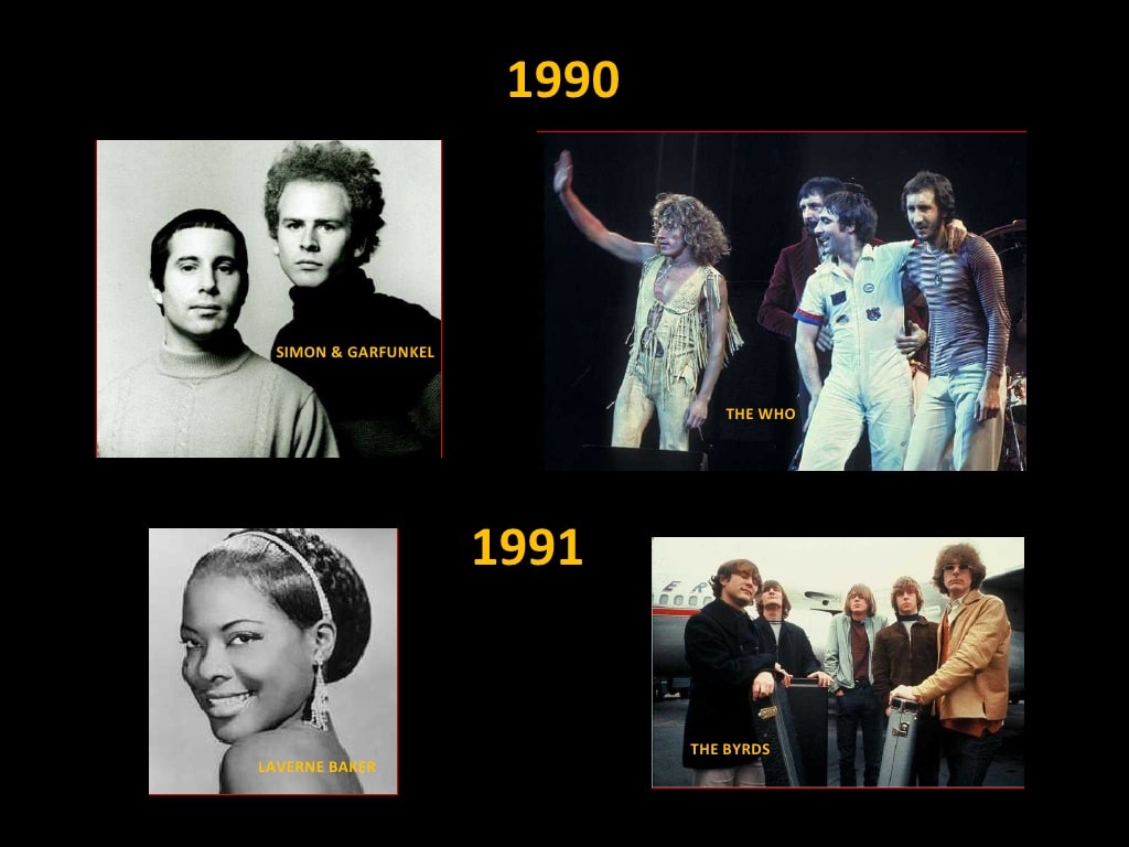 Alice In Chains, Anthrax, Emerson, Lake & Palmer, Faith No More, Iron Maiden, Jethro Tull, Joy Division, Judas Priest, King Crimson, MC5, Megadeth, Misfits, Mötorhead, Pantera, Roxy Music, Slayer, Soundgarden, The New York Dolls, The Smiths, Thin Lizzy y Toto no ingresen en los próximos años.